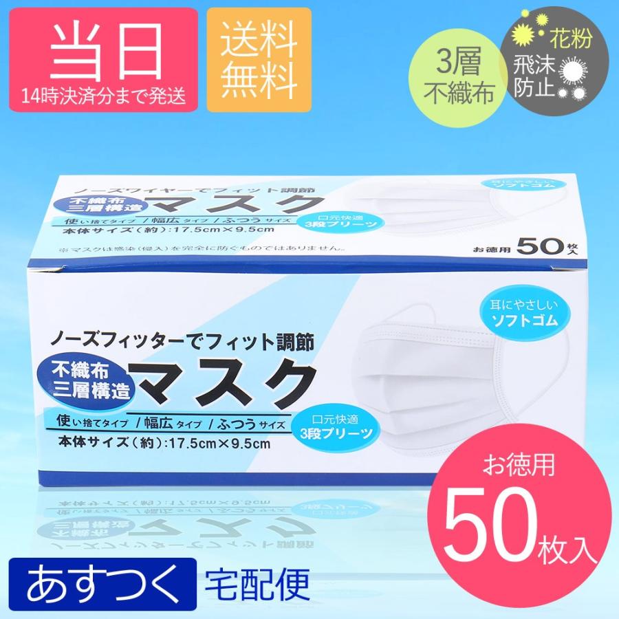 当日発送 即納 在庫あり 使い捨てマスク 50枚入り 不織布マスク 1箱 大人サイズ 17 5 9 5cm ウィルス予防 風邪 花粉 三段プリーツ Ajtmask50 Ajt 通販 Yahoo ショッピング